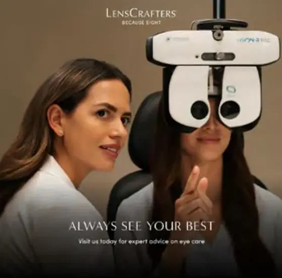 Eye exams available at the independent doctor of optometry at or next to LensCrafters. Doctors in some states are employed by LensCrafters.